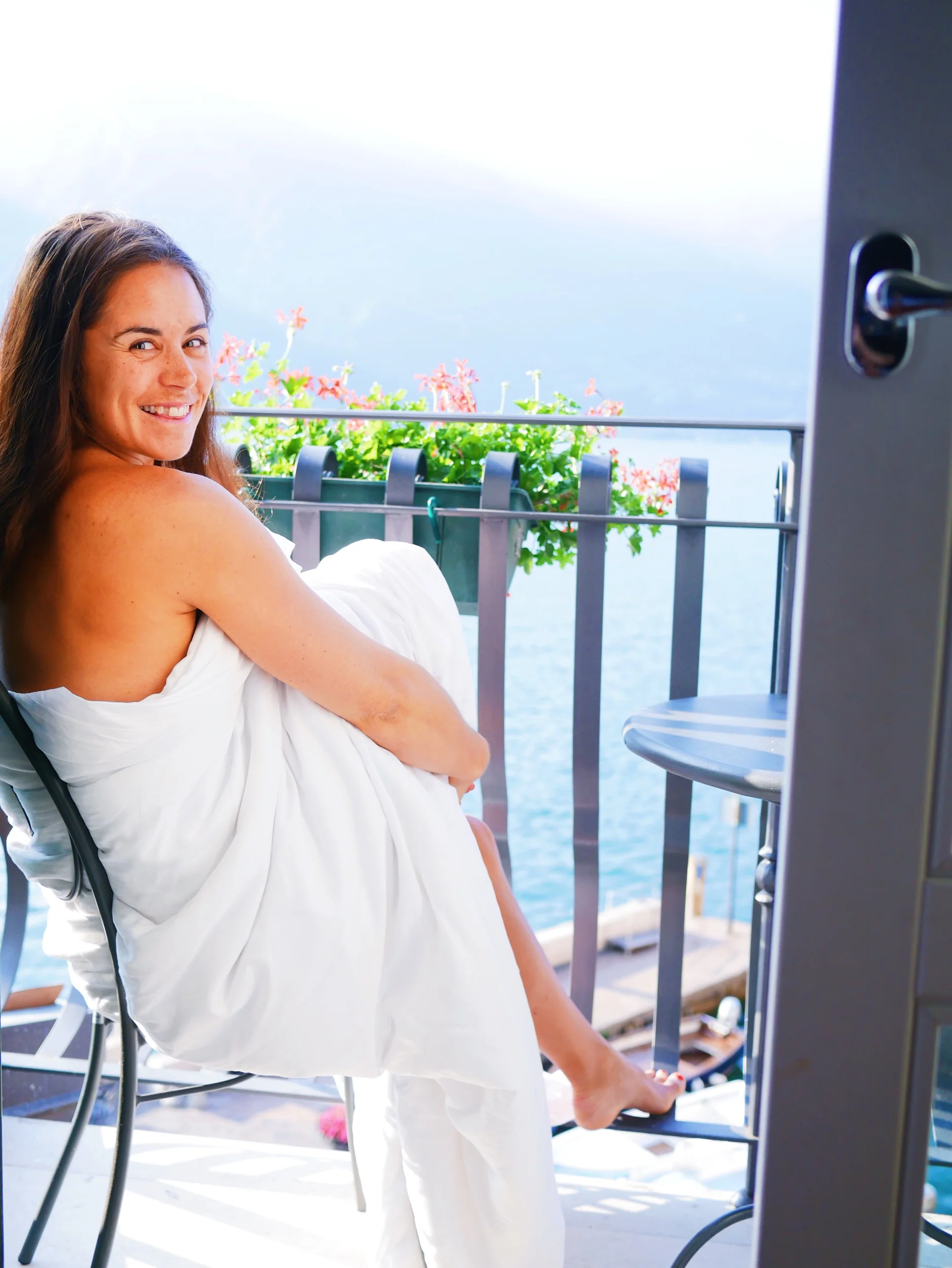 Den natten sov jag som en stock i över tio timmar och när jag vaknade till ljudet av att en liten by vaknar, utan alla typiska turistljud, kunde jag inte låta bli att svira in mig i täcket och sätta mig på balkongen för att se allt som skedde. Ni vet ett sånt där ögonblick som man drömmer om att ha, ser andra ha, men aldrig unnar sig själv. Mobilen fick ligga inne och jag lät Emil sova vidare. M a g i s k t.