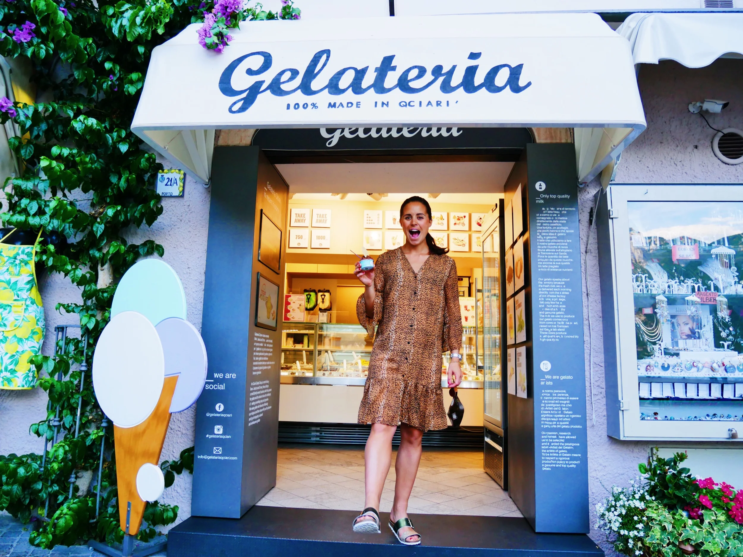 Efter middagen gick vi och köpte den obligatoriska choklad-gelato till mig. Strosade efter gatorna och gick sedan tillbaka till hotellet, satt en stund på vår balkong som gick ut ovanför den lilla lilla hamnen med ett tiotal båtar.