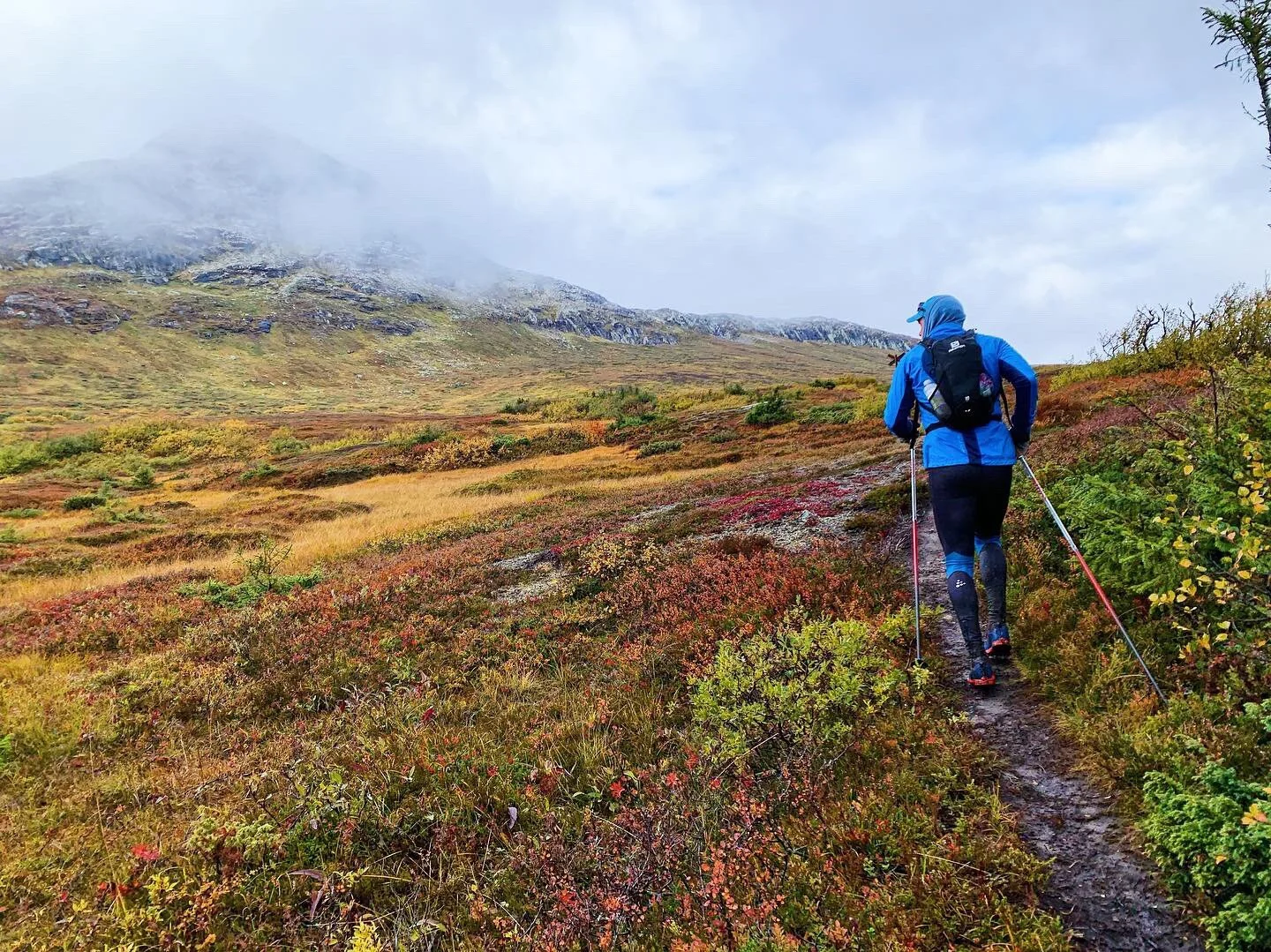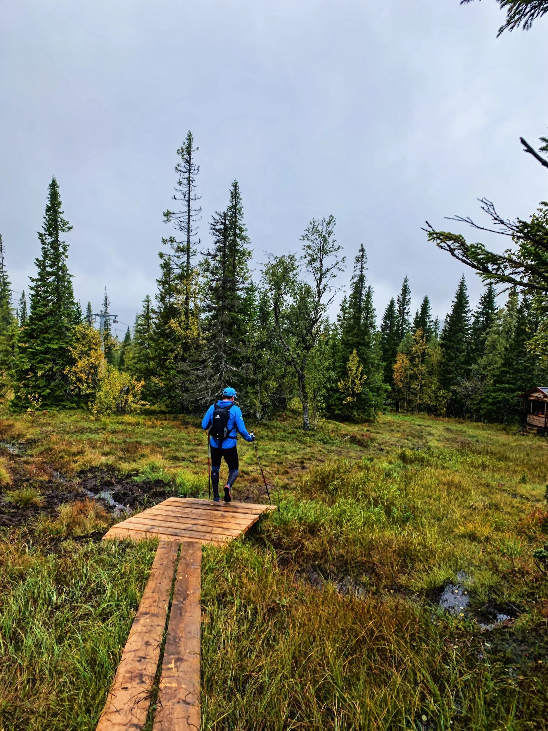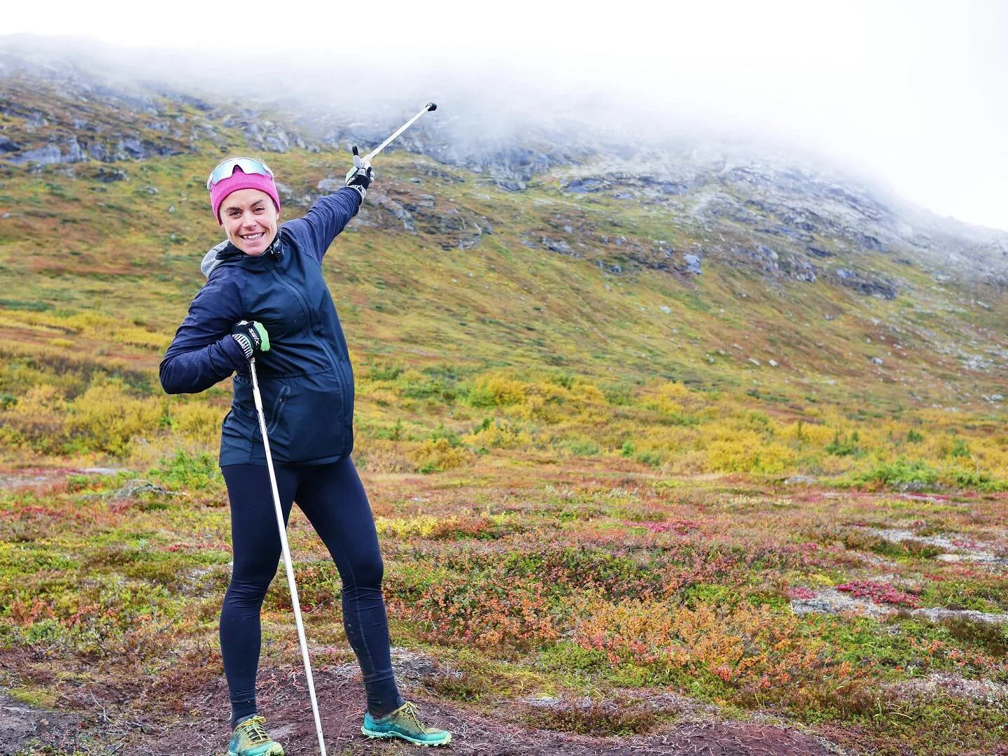 På lördag morgon vaknade vi tidigt, tog en lång och rejäl frukost innan vi bytte om och tog stavarna i handen och traskade upp på berget bakom, upp mot fjället.
