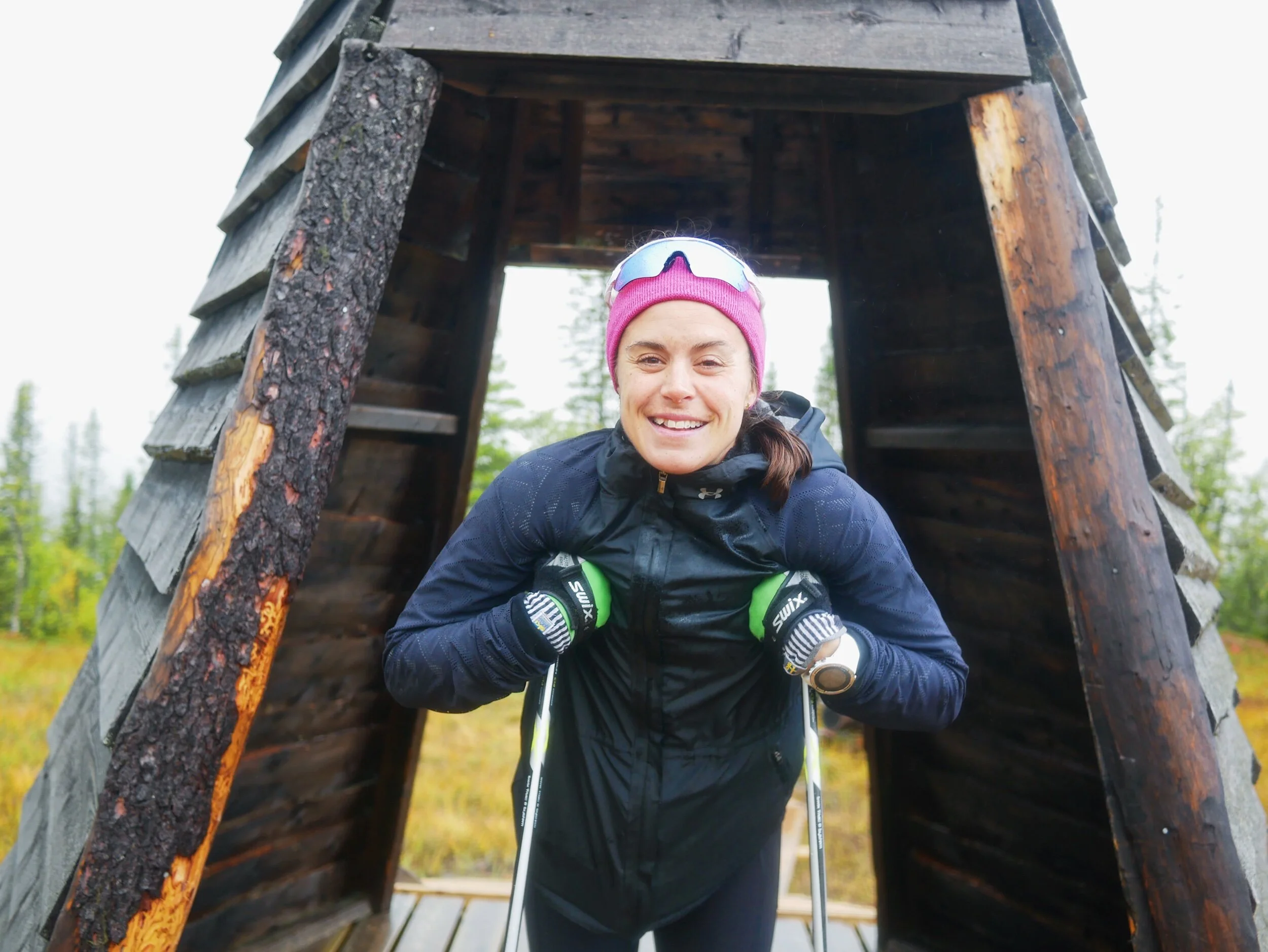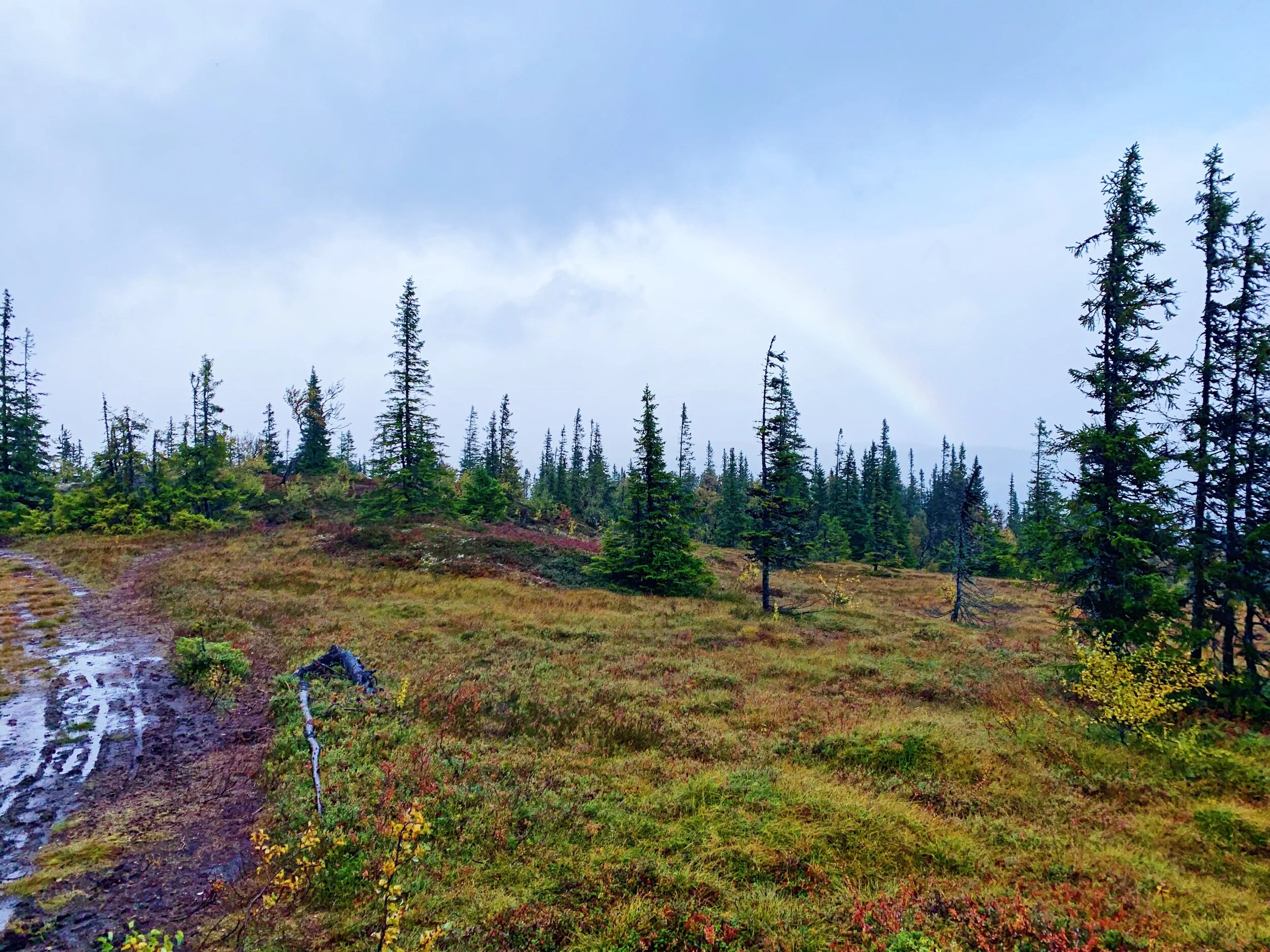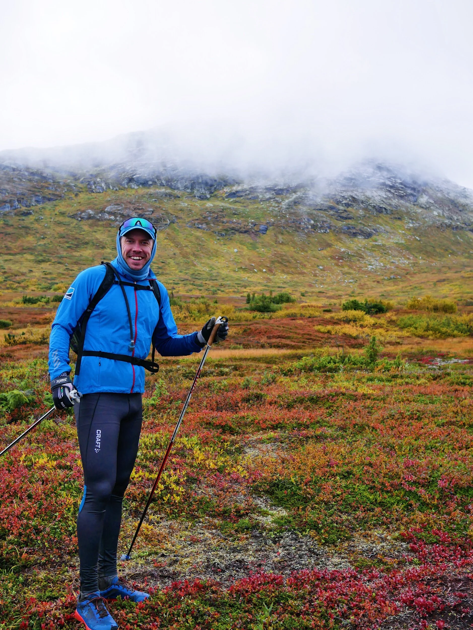 På lördag morgon vaknade vi tidigt, tog en lång och rejäl frukost innan vi bytte om och tog stavarna i handen och traskade upp på berget bakom, upp mot fjället.