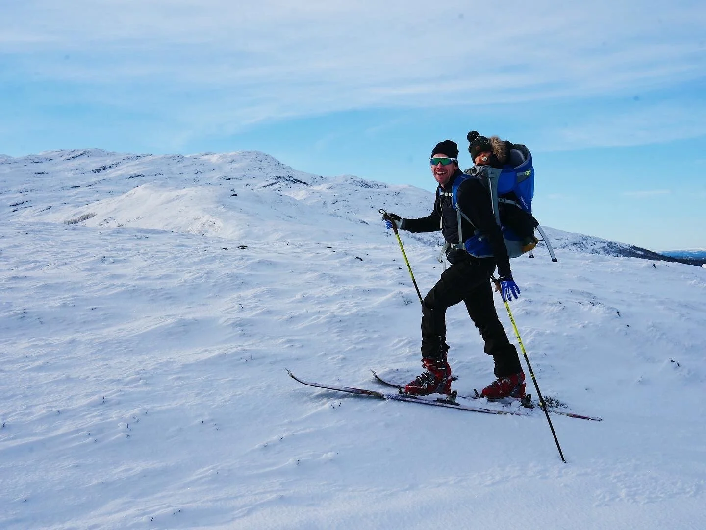Trots en (extremt) missnöjd ettåring som skrek som besatt när vi lyfte ur honom ur bärstolen men tystnade illa kvickt när vi började åka utför igen, hann jag ändå njuta av känslan av att ta sig upp, ta en lite fikapaus och sedan knäppa fast hälarna och försiktig ta sig ned mellan träden igen.