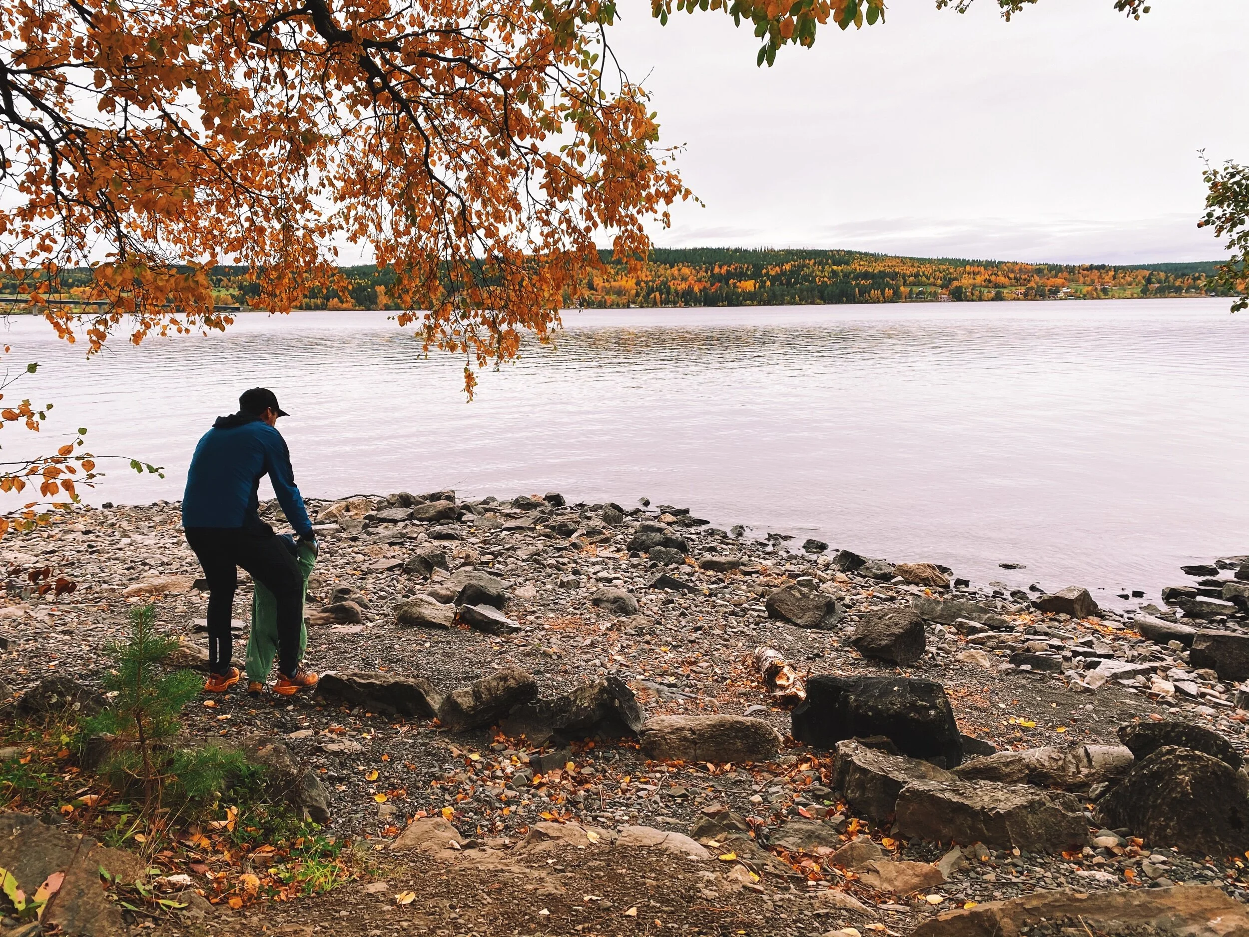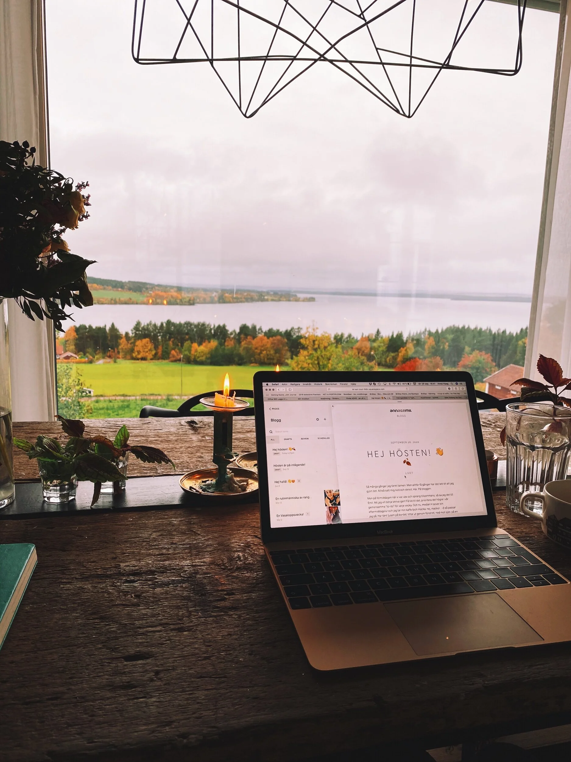 Men på förmiddagen när vi var ute och sprang tillsammans, så sa jag det till Emil. Att jag vill börja skriva igen! Få tid till det, prioritera det högre i vår gemensamma “to-do” för varje vecka. Och nu, medan H sover sin eftermiddagslur och jag tar min kaffe (och macka, nej, mackor.. :-)) så passar jag på. Har tänt ljusen på bordet, tittar ut genom fönstret, ned mot sjön, på en klassisk höstdag i Jämtland. Magiska färger men ett grått dis som gör att man inte ser fjällen på andra sidan sjön.