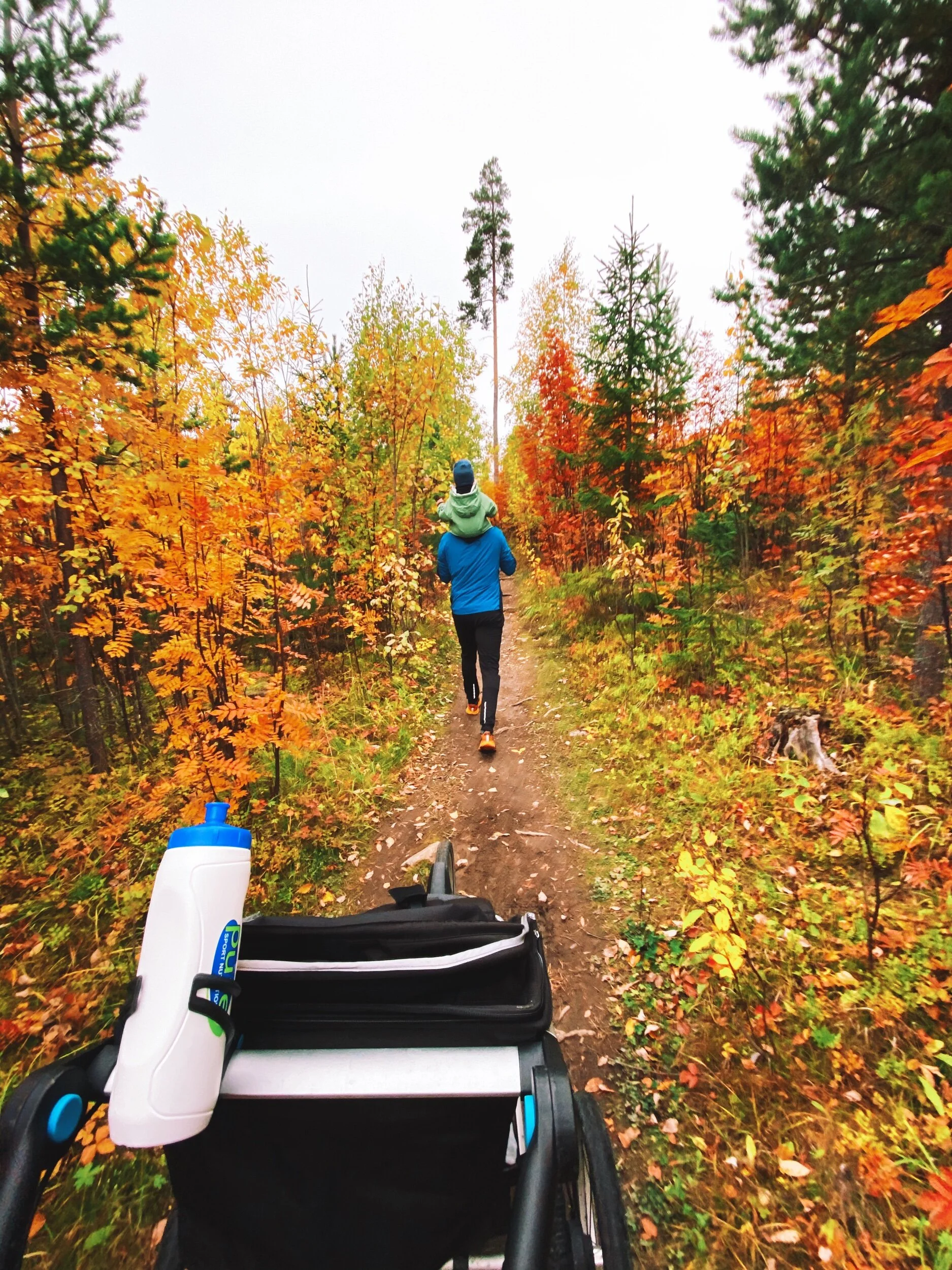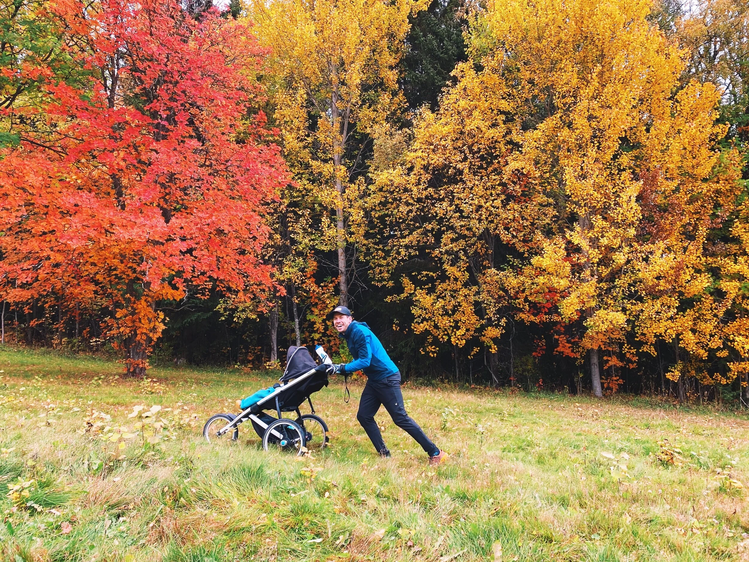 Idag har vi haft en klassisk lugn dag för familjen Jönsson-Haag. Vi vaknade av att H började prata i rummet intill, bar in honom till oss och försökte oss på att mysa lite med honom. Inte så uppskattat hos en snart ettåring full med energi. Så frukosten blev inte en sån där lång och mysig sak som man hade förr, utan i med mat fortast möjliga hos H, så vi fick lite tid efteråt att ta kaffet i lite lugnare tempo. Efter att H hade fått leka av sig och klockan började närma sig halv tio, bytte vi om och stoppade ned honom i vagnen och drog ut på en löptur. Tillsammans! Det var ett tag sedan vi hade tid med det. Men så härligt! Vi sprang på lite nya ställen och gamla, kända vägar. Stannade till och lekte vid vattnet och när vi började närma oss hemma började H’s ben få lite för mycket spring i sig, så han fick helt enkelt åka upp på Emils axlar den sista biten. Vad gör man inte för att hålla alla nöjda och glada? Men då hade vi varit ute rätt länge, H hade fått sin förmiddagslur och vi började bli hungriga, så det passade bra att vända hem.