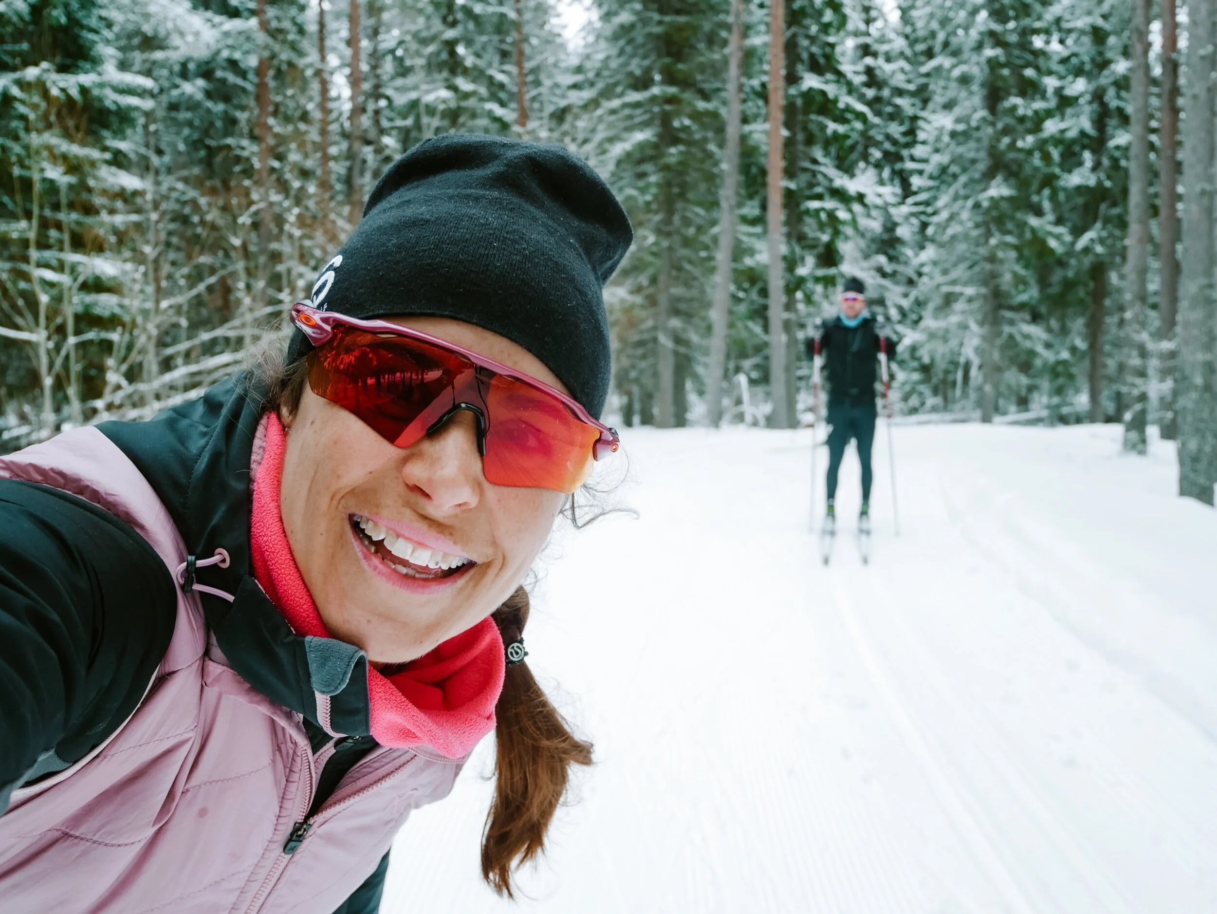 … men nu tar vi helg. Jag står och skriver vid köksön. Har solen i ögonen. Vinden har mojnat och ett fräsch snötäcke täcker ALLT. Vi har precis kommit in från en löptur med vagnen och jag slängde i mig resterna av morgonens gröt som ett mellanmål tillsammans med en latte (ja! äntligen har jag börjat kunna dricka kaffe igen) och nu drar killarna iväg och drar upp skidspåren innan det är dags för middag.