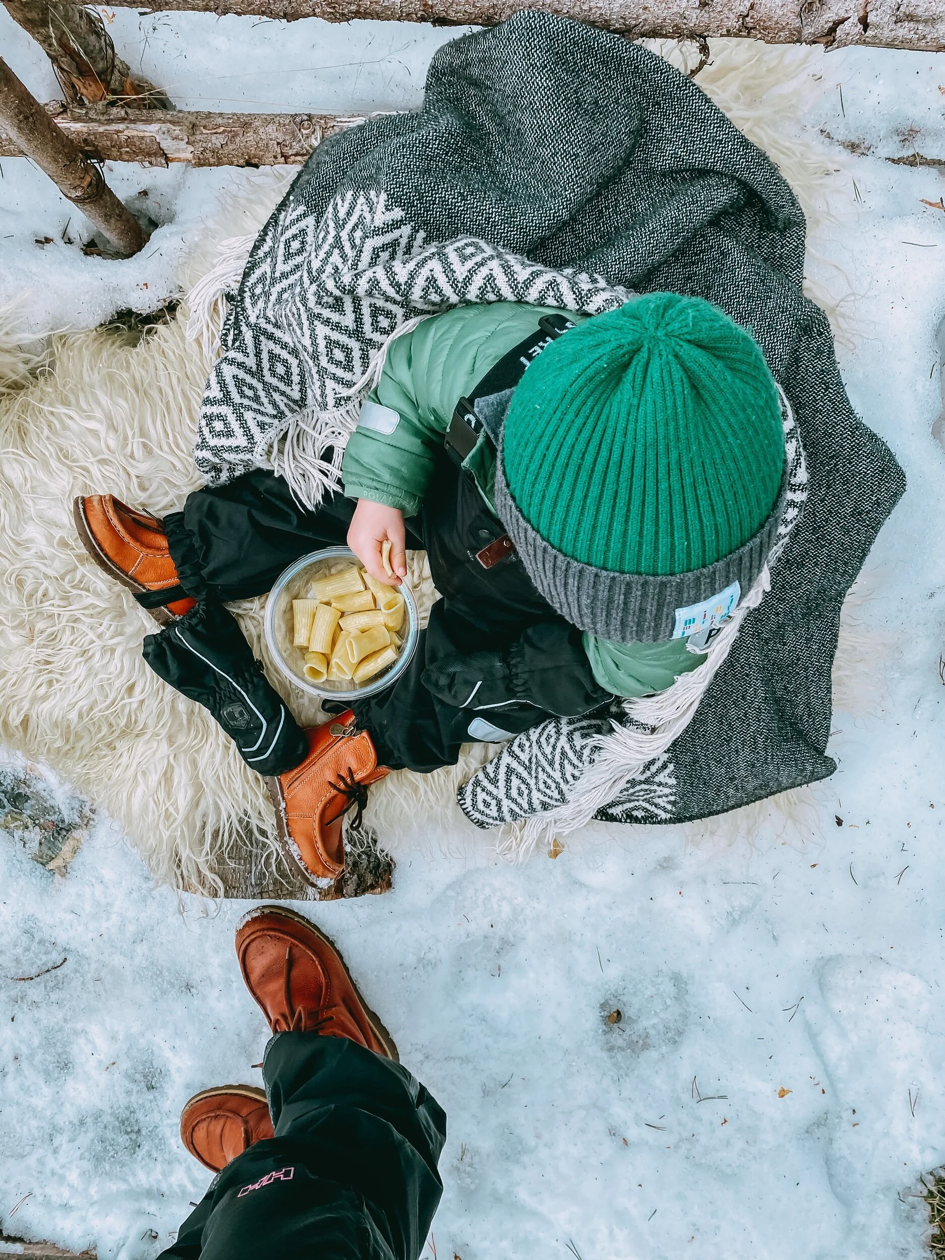 Sen hoppade vi av vid kyrkan, stötte in i ännu en vän jag inte sett på länge, innan vi traskade hem. Dock var det med en mindre nöjd kille då han envisades med att kasta handskarna och därför blev iskall om de små fingrarna. Så när vi kom hem måste det ha värkt nå himmelskt i dem, för han var otröstlig någon minut innan han var sitt vanliga jag igen. Det där med att få vantar att sitta kvar OCH få dem att förstå att de blir kalla om de åker av…