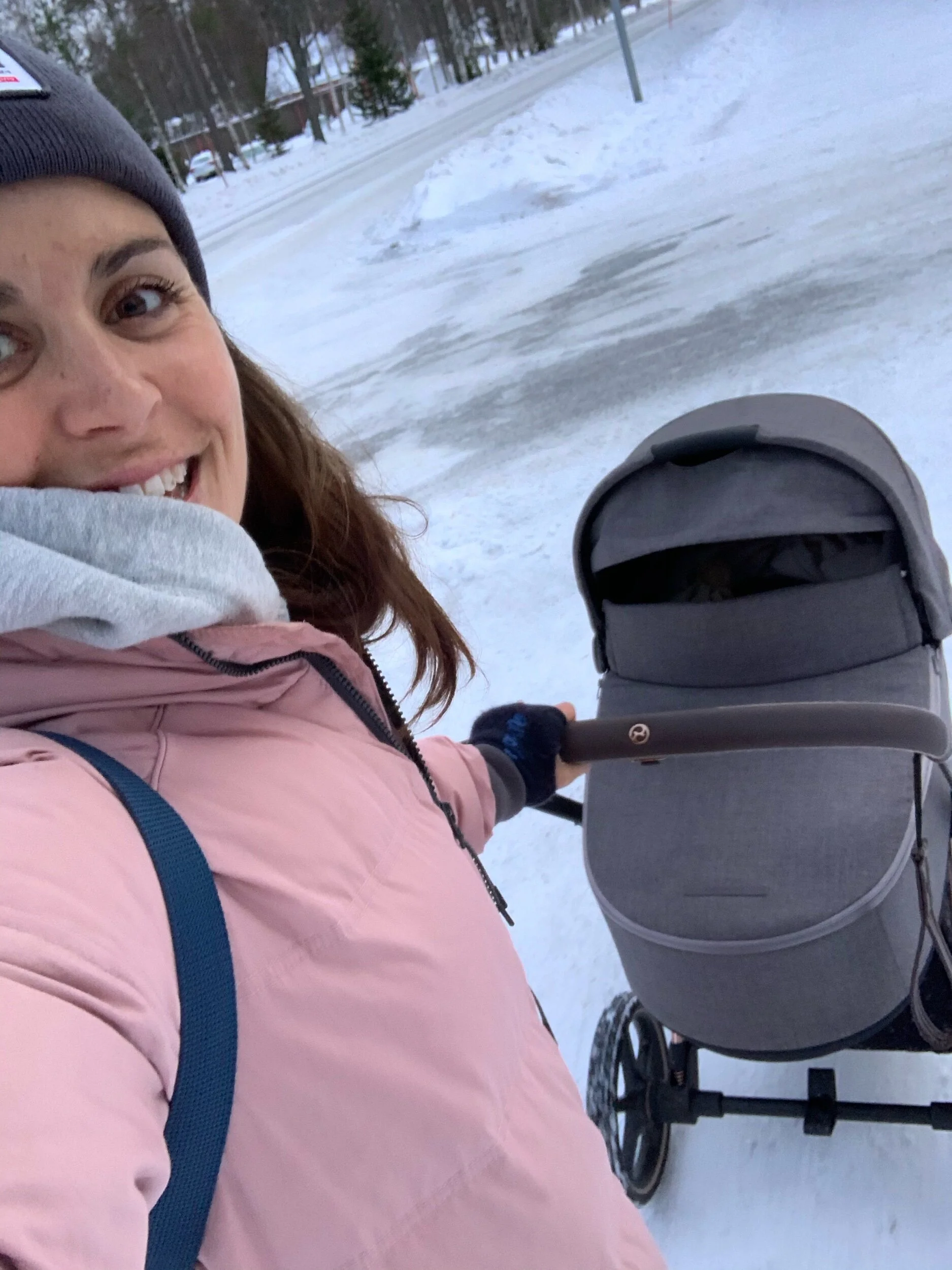 Morgonen inleddes med lussebullar och julte framför Lucia innan vi tog en långfrukost med risgrynsgröt och tunnbröd. Drömmigt värre! Som jag längtat efter att komma in i julstämningen…! Efter frullen packade vi på oss de små i varsin bärsele och traskade runt Bynäset tillsammans. Pappa med stavar, jag med syrrans Nils och syrran med Harry. Det tog sin lilla tid i snön och halkan men det var himla härligt. Maxade de ljusa timmarna utomhus.