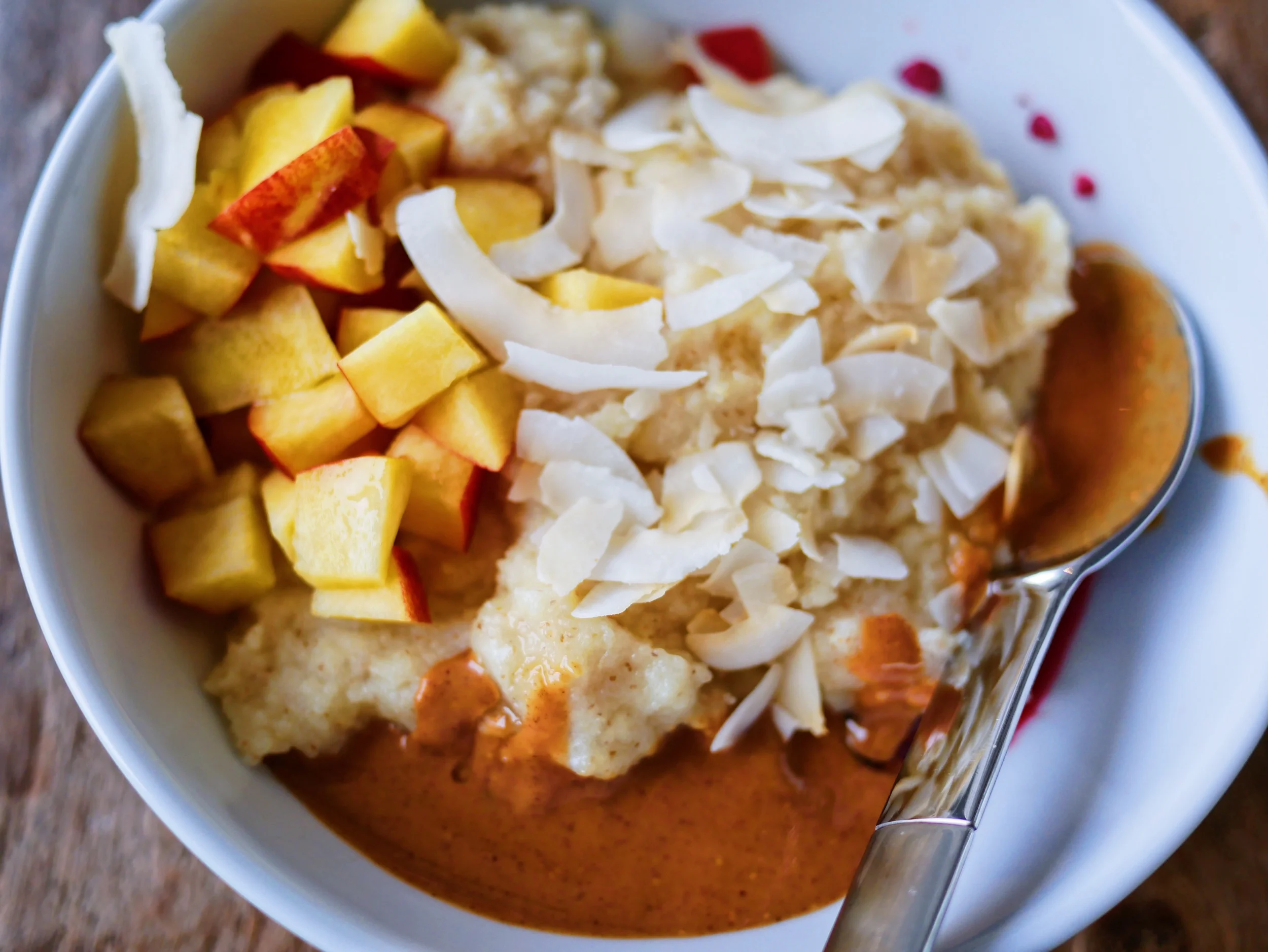Men nu har jag tvistat till det lite. Kokar gröten på soyadryck och har i rejält med salt. Den får inte bli för tjock, så jag tar av den av spisen när den fortfarande är relativt lös. Serverar den med: